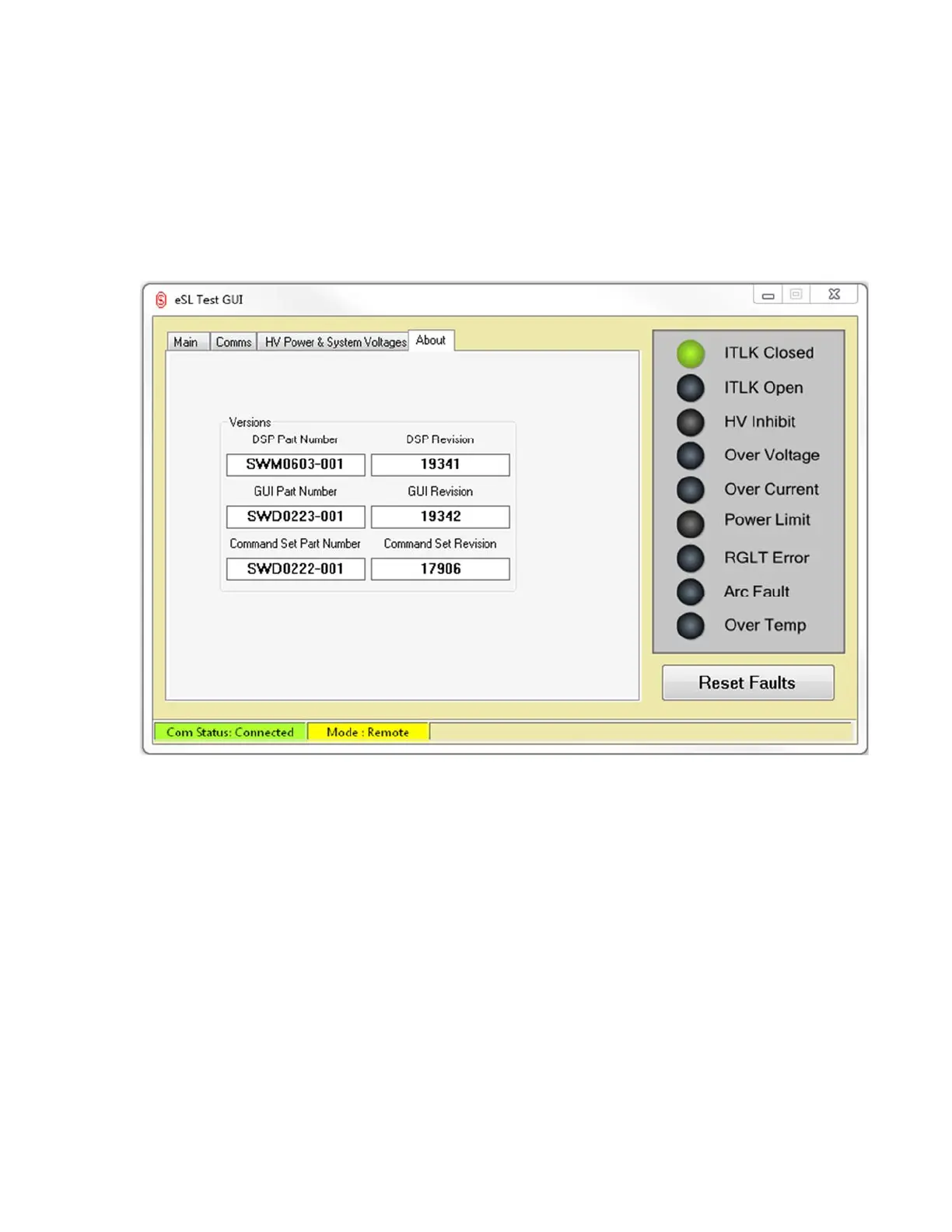 TheAbouttabdisplaysthepartnumberandrevisionofDSPfirmwareandGUI.