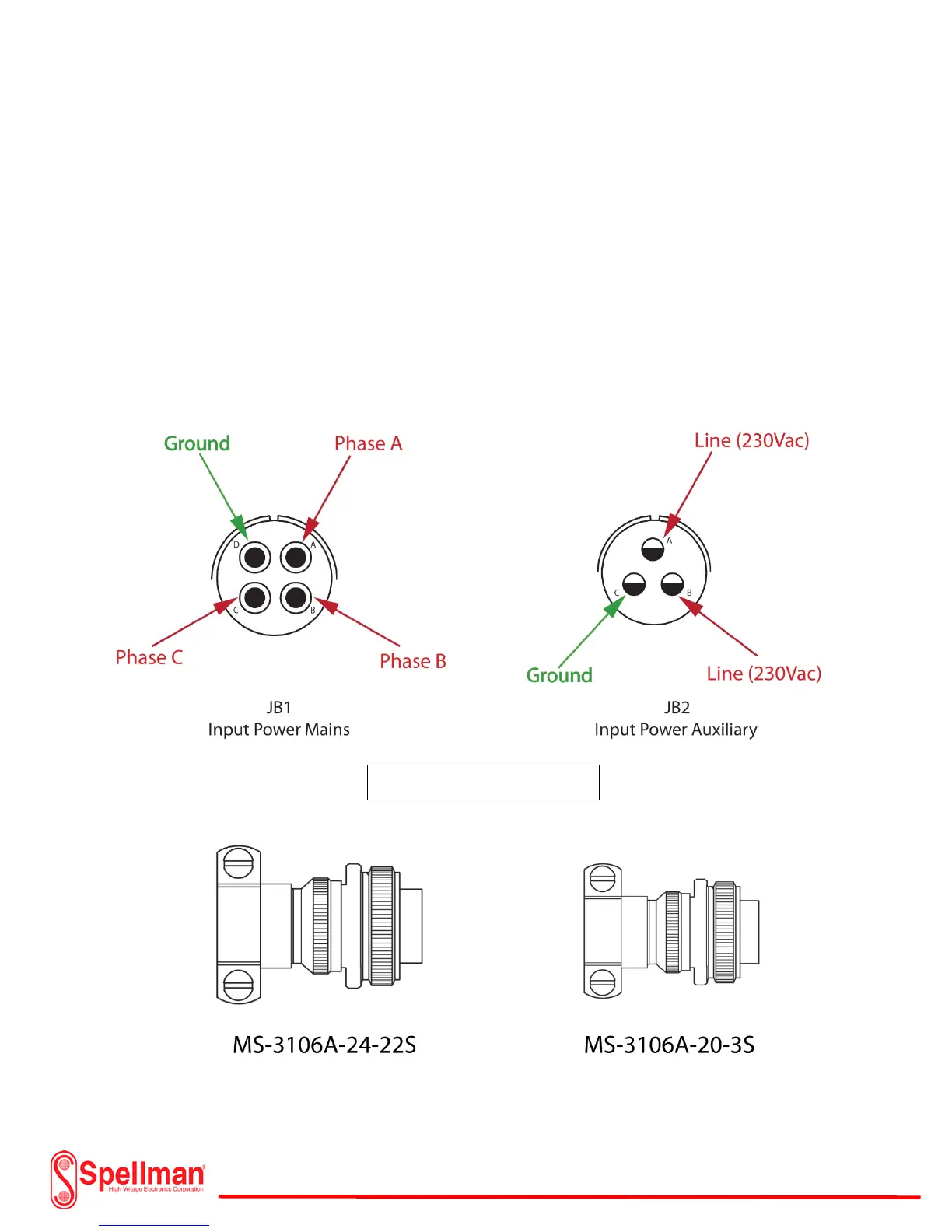 Mains JB-1. Use #12 AWG copper stranded wire for each line and ground on the Input Power Auxiliary