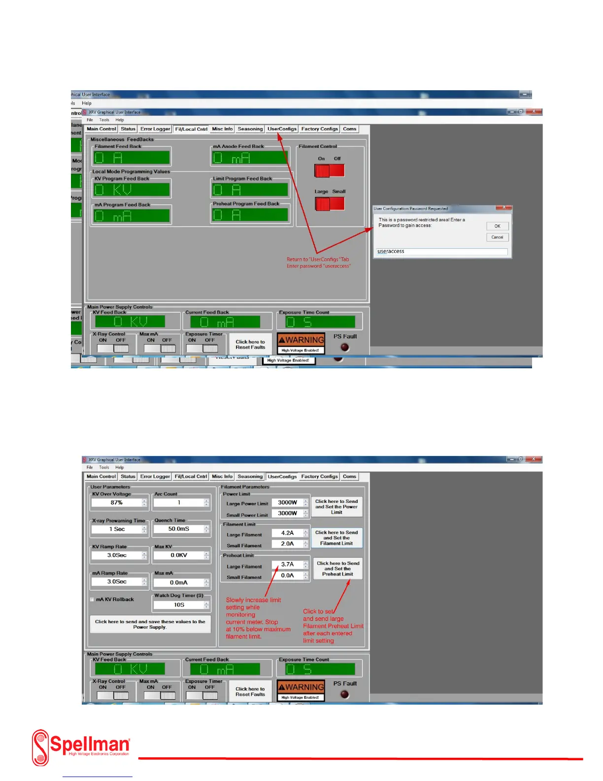 Spellman XRV Sub-system - Adjusting Filament Current and Preheat
