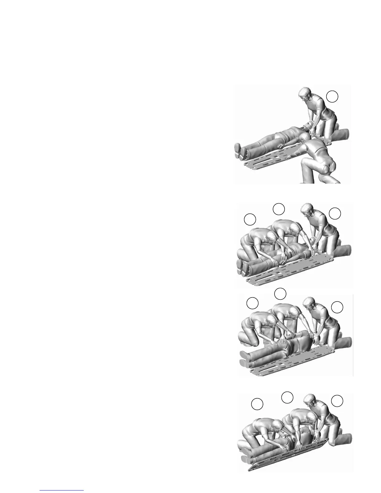 board. Res. 1 and 3 are put astride the patient and position respectively hands under her armpits