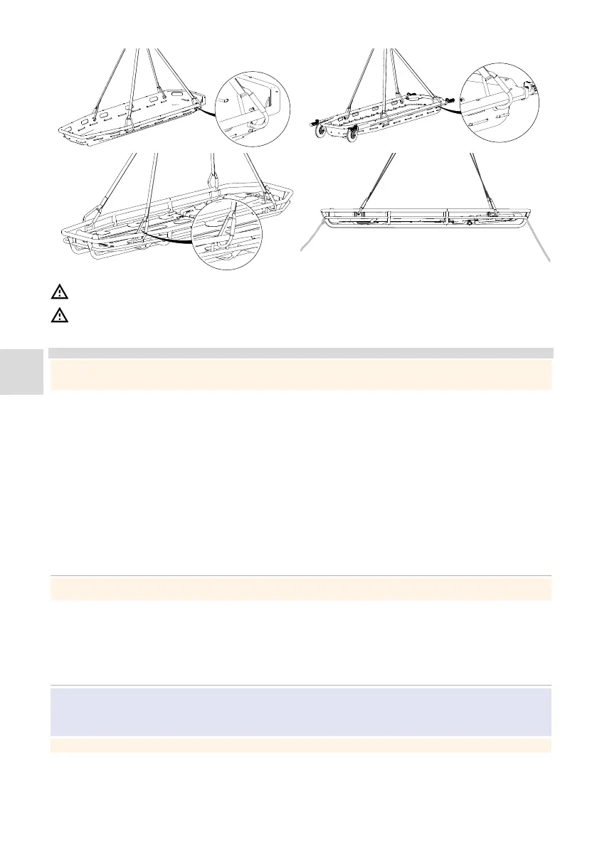 Before lifting or lowering, after carrying out all the safety checks necessary for handling, adjust the harness and/or distribute the load inside the basket stretcher in