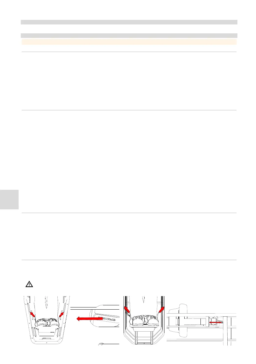 • Insérer les crochets aux extrémités de la ceinture en correspondance des fentes/poignées présentes sur le périmètre de la civière de transport