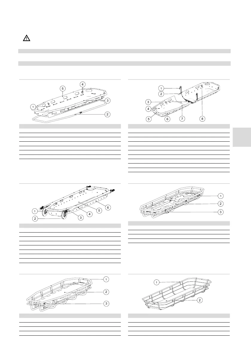 • Non sono previsti fissaggi per le barelle basket all’interno di veicoli o altri ambienti.