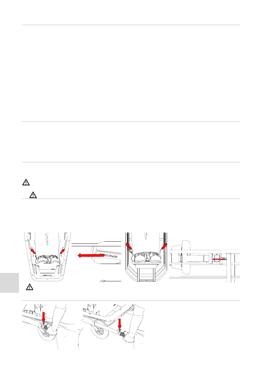 • Når båren er adskilt, skal du være yderst forsigtig med ikke at beskadige forbindelseselementerne eller tilsmudse dem med snavs, der kan udelukke korrekt drift.