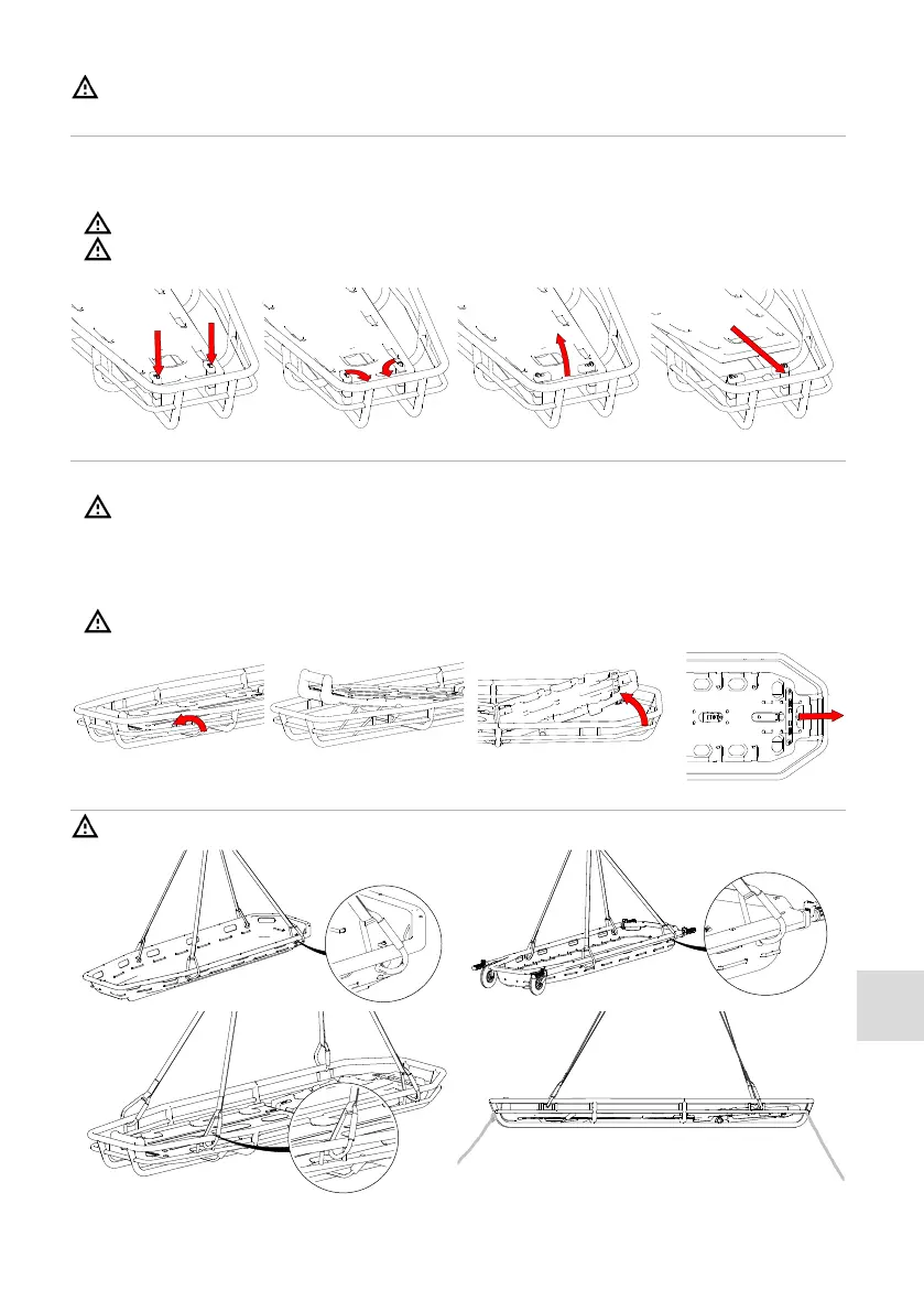 • Pas på ikke at klemme dele af andre enheder i brug eller patienten selv mellem spinalbrættet og kurvebåren.