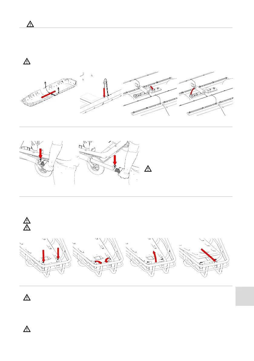 • Let goed op als de brancard uit elkaar gehaald is, om de bevuiling van of schade aan de verbindingselementen te vermijden, waardoor ze niet langer correct zouden