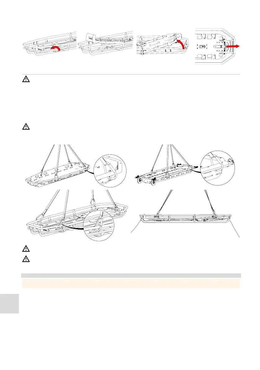 • Aan de kuipbrancard kunnen “anti-rotatiekoorden” worden bevestigd zodat het reddingspersoneel de brancard voor de verplaatsing kan manoeuvreren.