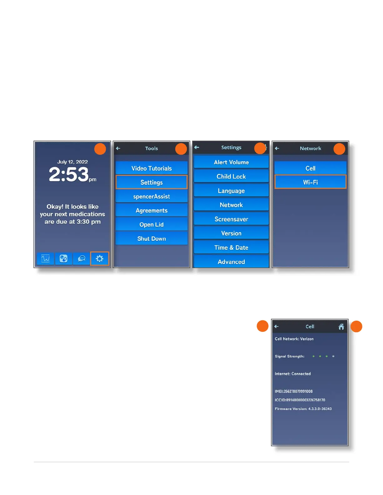 4. Touch the Cell or WiFi button.