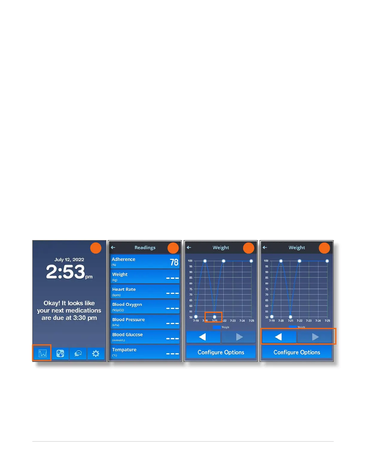 2. Touch on the measure of interest (e.g., Adherence, Weight) on the Readings screen.