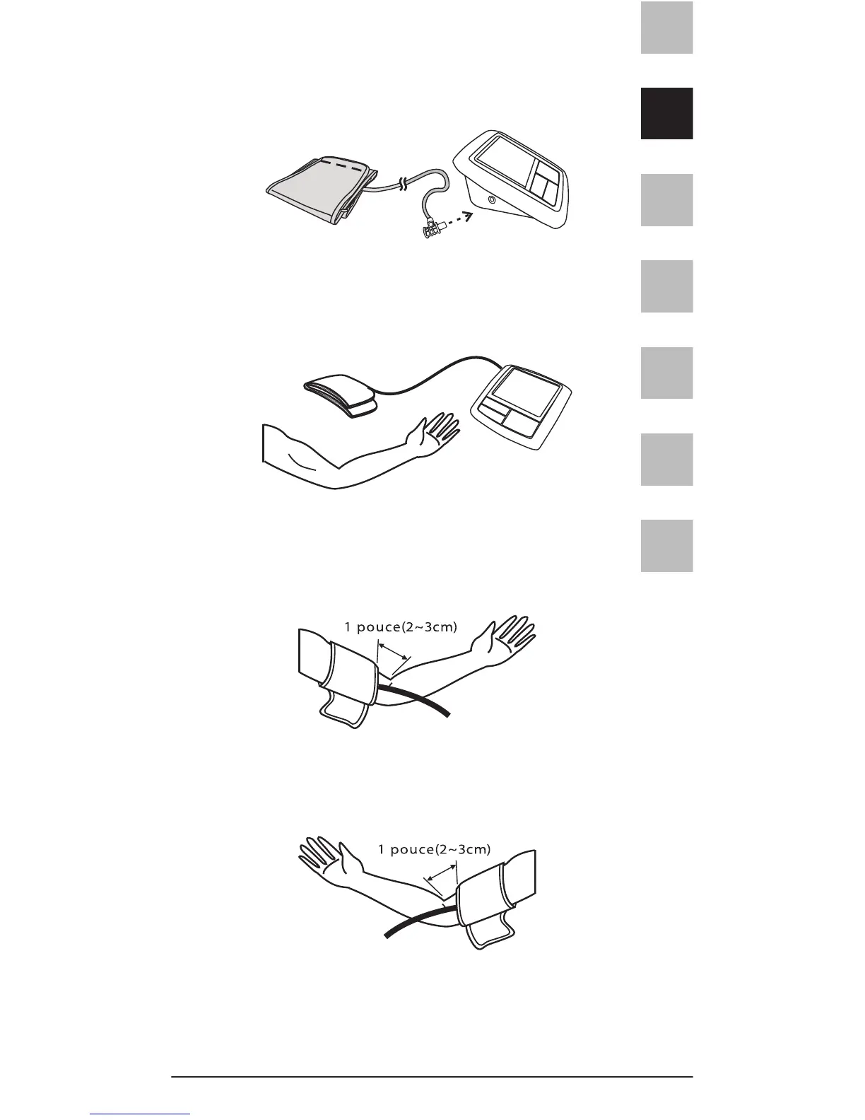 inférieur du brassard doit être à environ 2 ou 3 cm (1