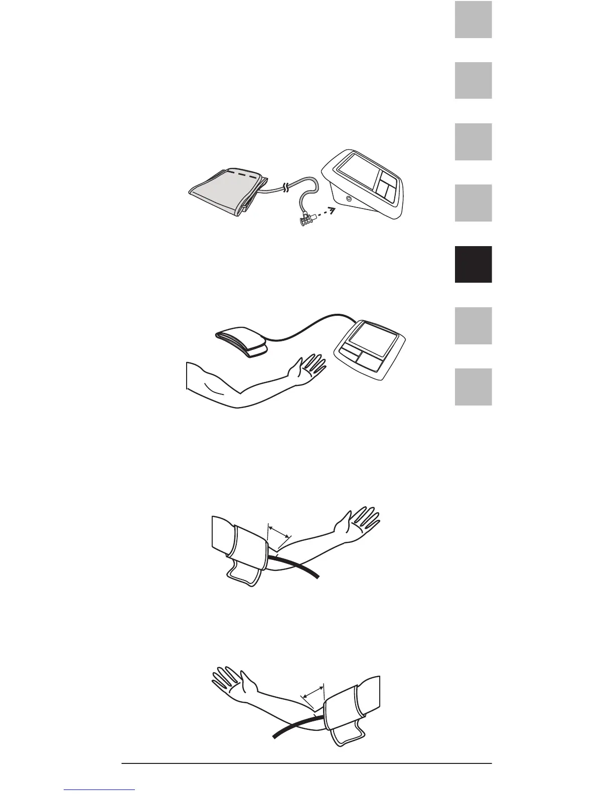 ist, legen Sie die Manschette um den rechten Arm, wie