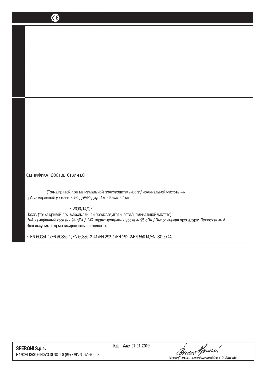 • 2006/42/CE (Punto in curva alla max Portata/Hz di targa ➞ LpA misurato ≤ 80 dBA/R:1m - H:1m)