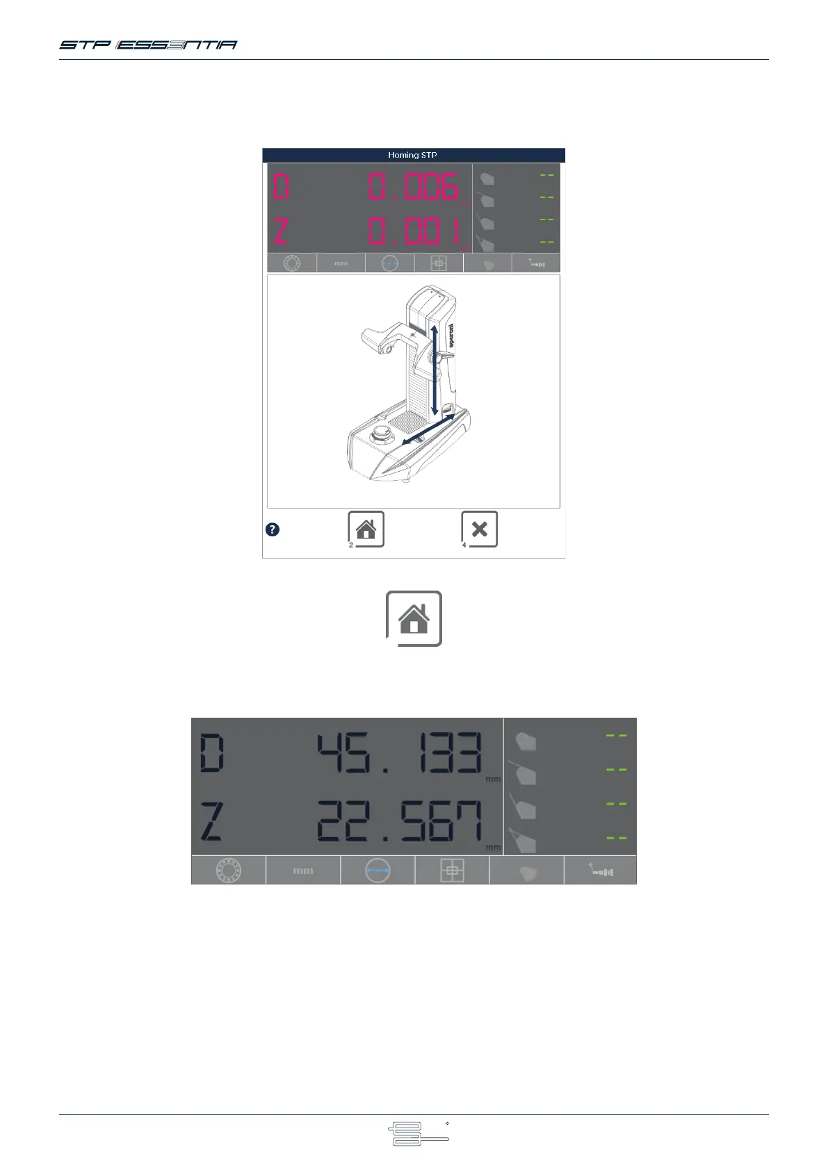 If the measures color is BLUE, the machine is waiting for the movement. If MAGENTA, the machine is not homed.