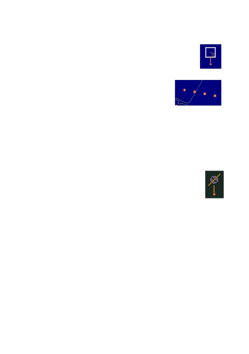 b. If the object is a point a white box appears around the