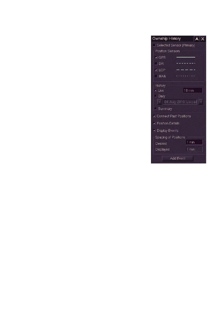 To select a position source for a secondary history track, activate the