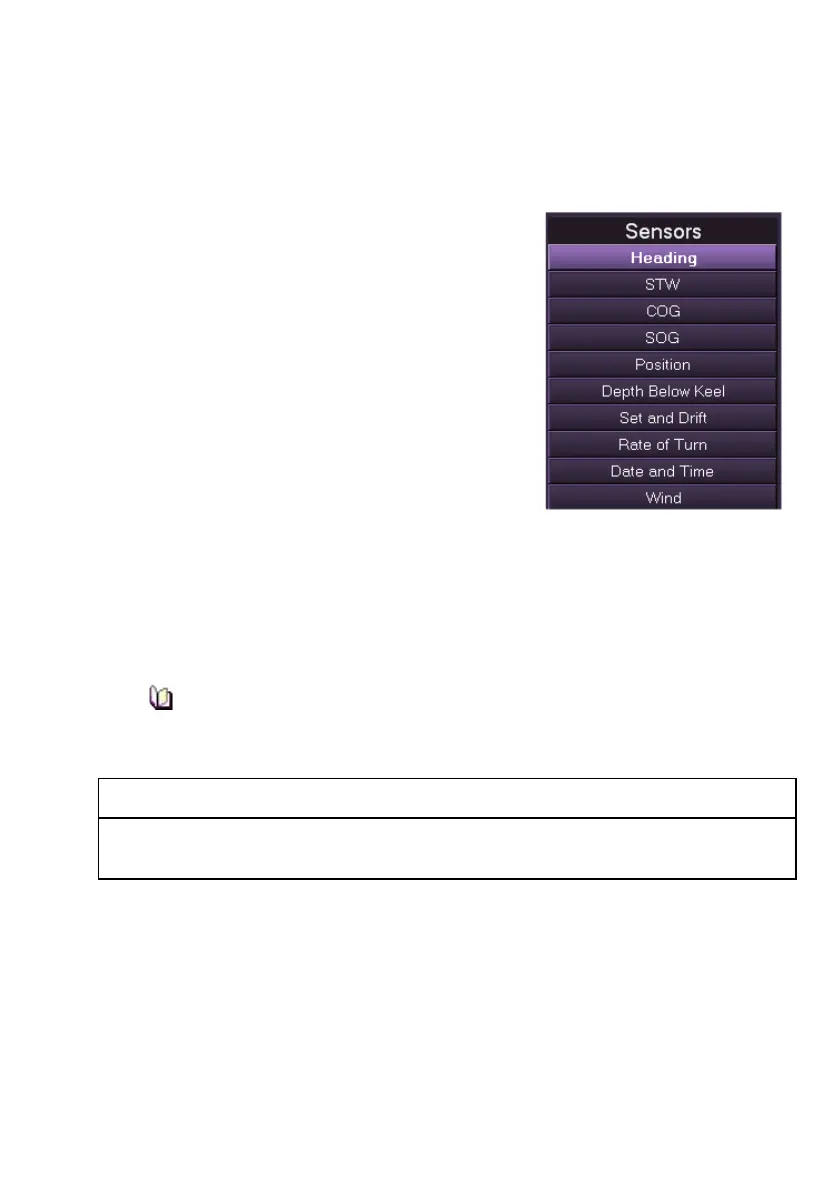 The Sensors menu allows the operator to select