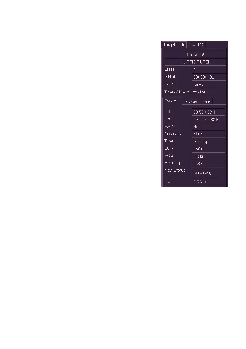 Relevant AIS Target information is then displayed in a Selected Target