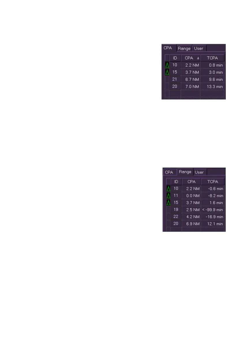 To sort the targets by CPA click on the triangle symbol in the CPA button.