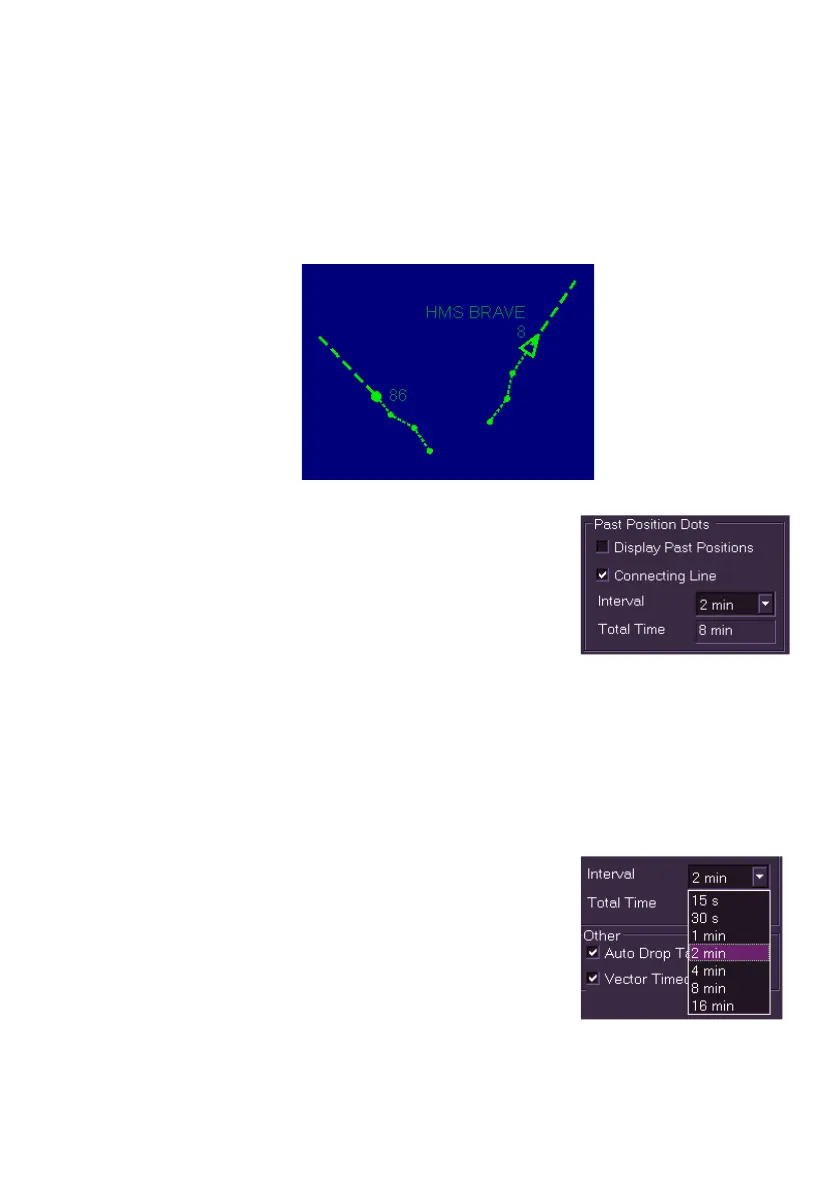 When an AIS target is activated, the past position