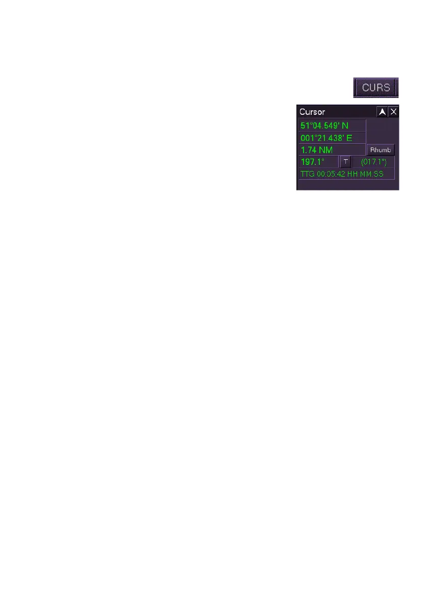 Cursor data may be calculated based on Rhumb line route or Great Circle