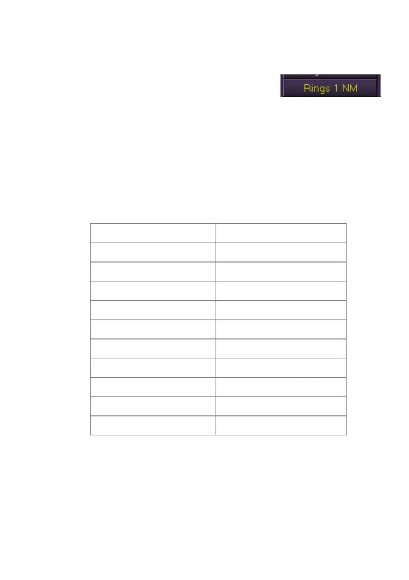 When range rings are switched on the button displays the current scale in