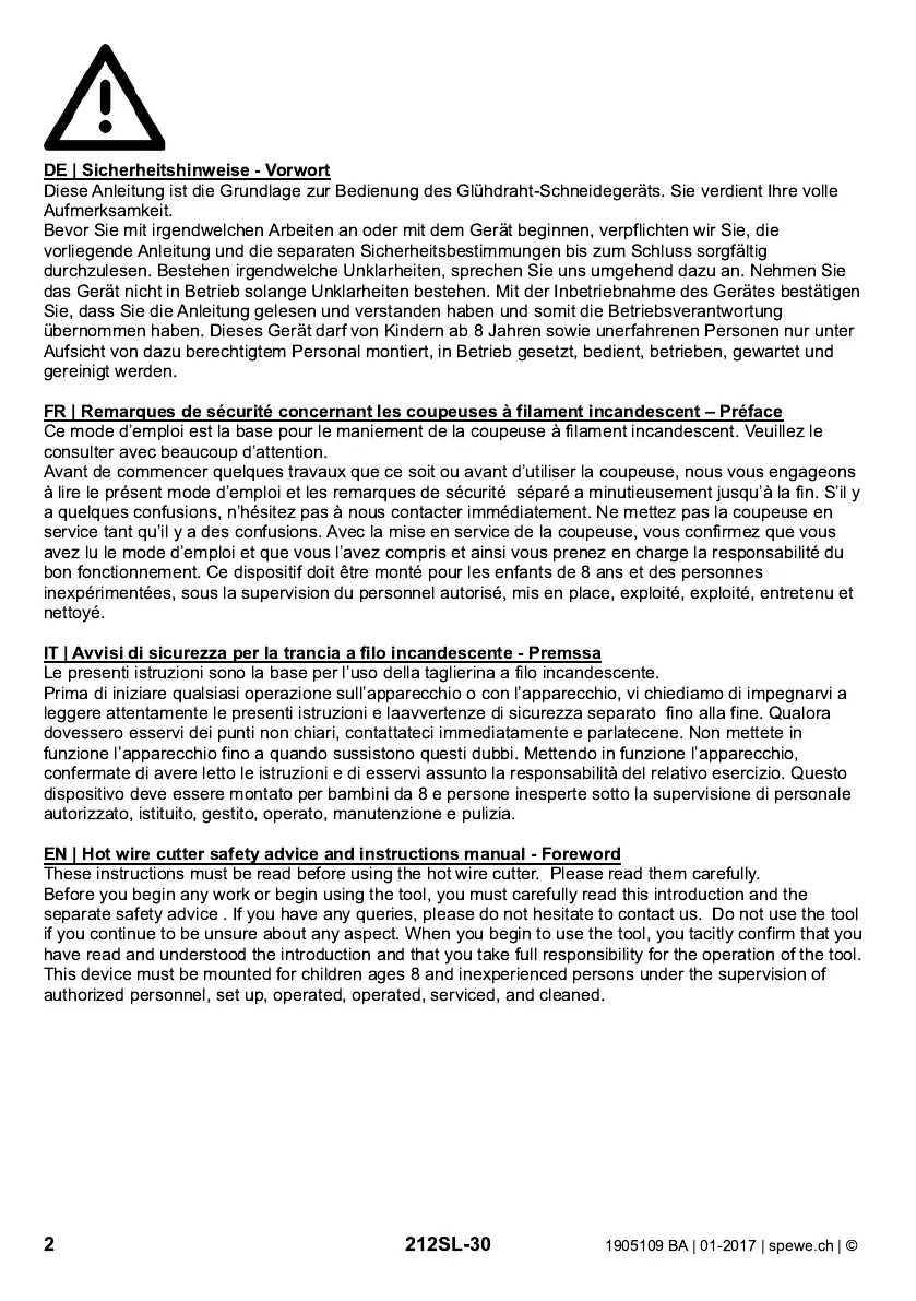 IT | Avvisi di sicurezza per la trancia a filo incandescente - Premssa