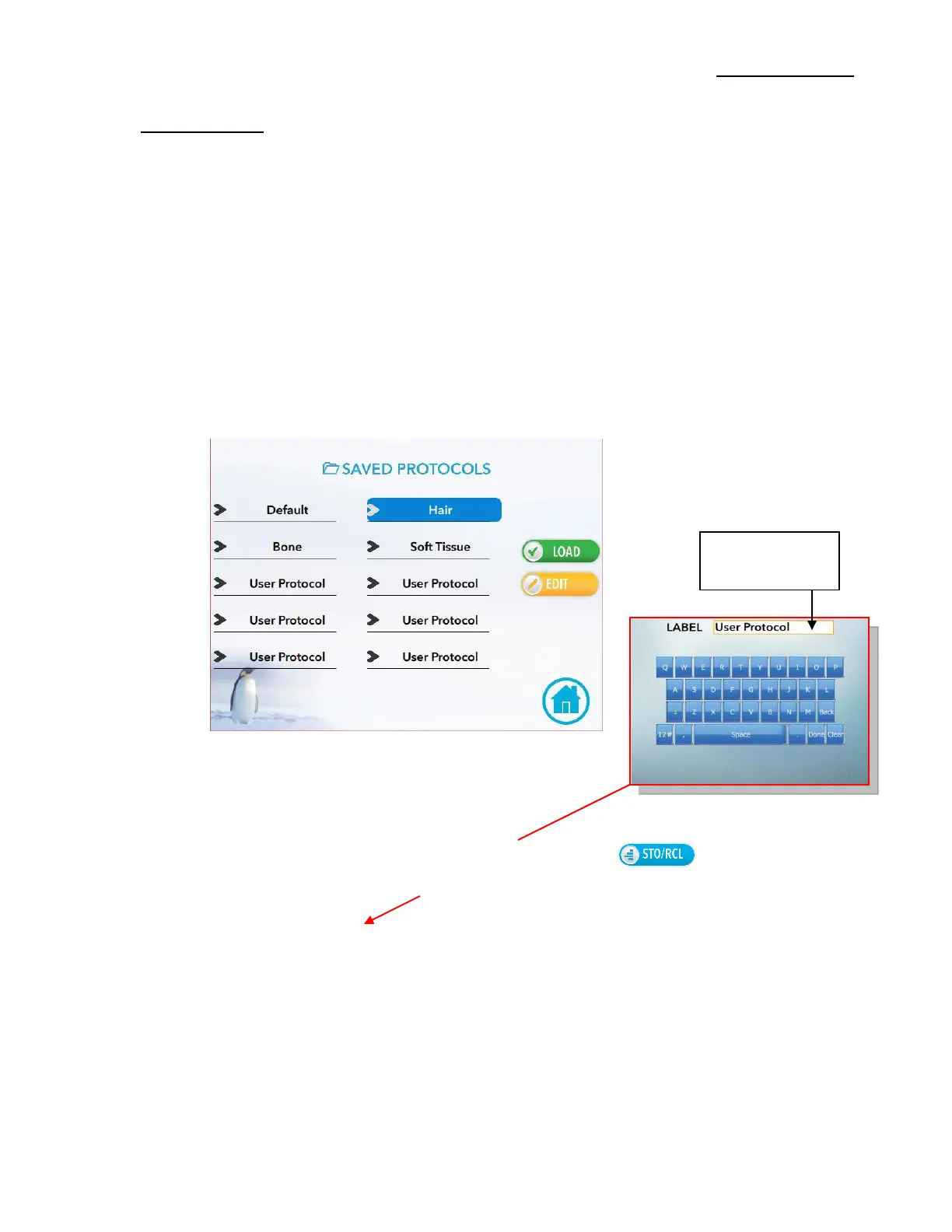 touchscreen. This brings up vacant protocol slots on the SAVED PROTOCOLS screen.