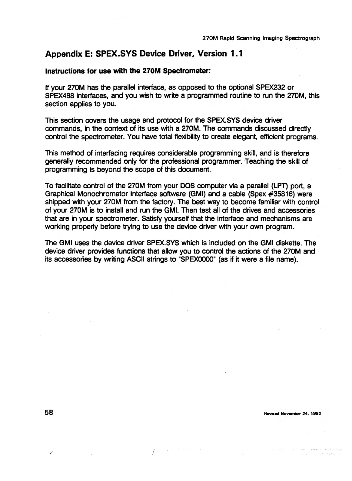 SPEX.SYS Device Driver, Version 1.1