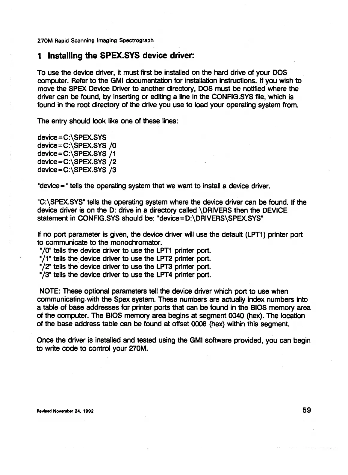 statement in CONFIG.SYS should be: •device=D:\DRIVERS\SPEX.SYS"