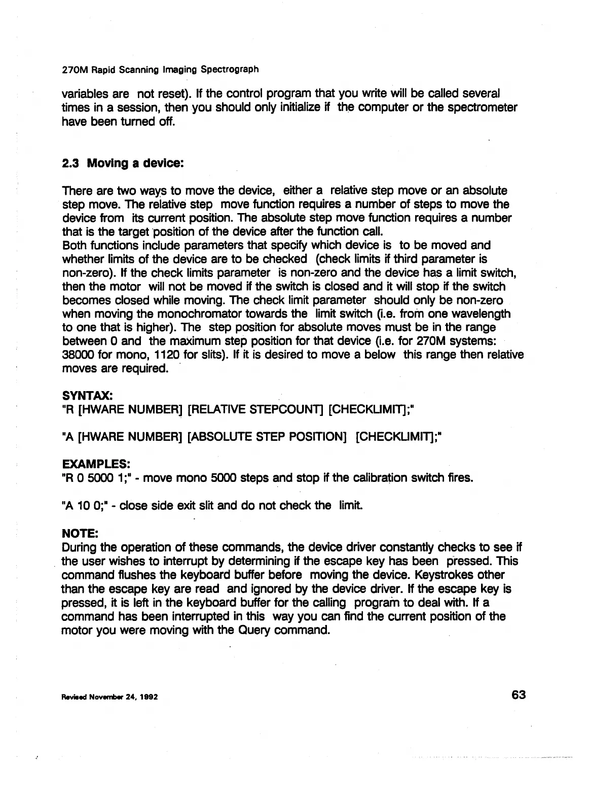 command flushes the keyboard buffer before moving the device. Keystrokes other