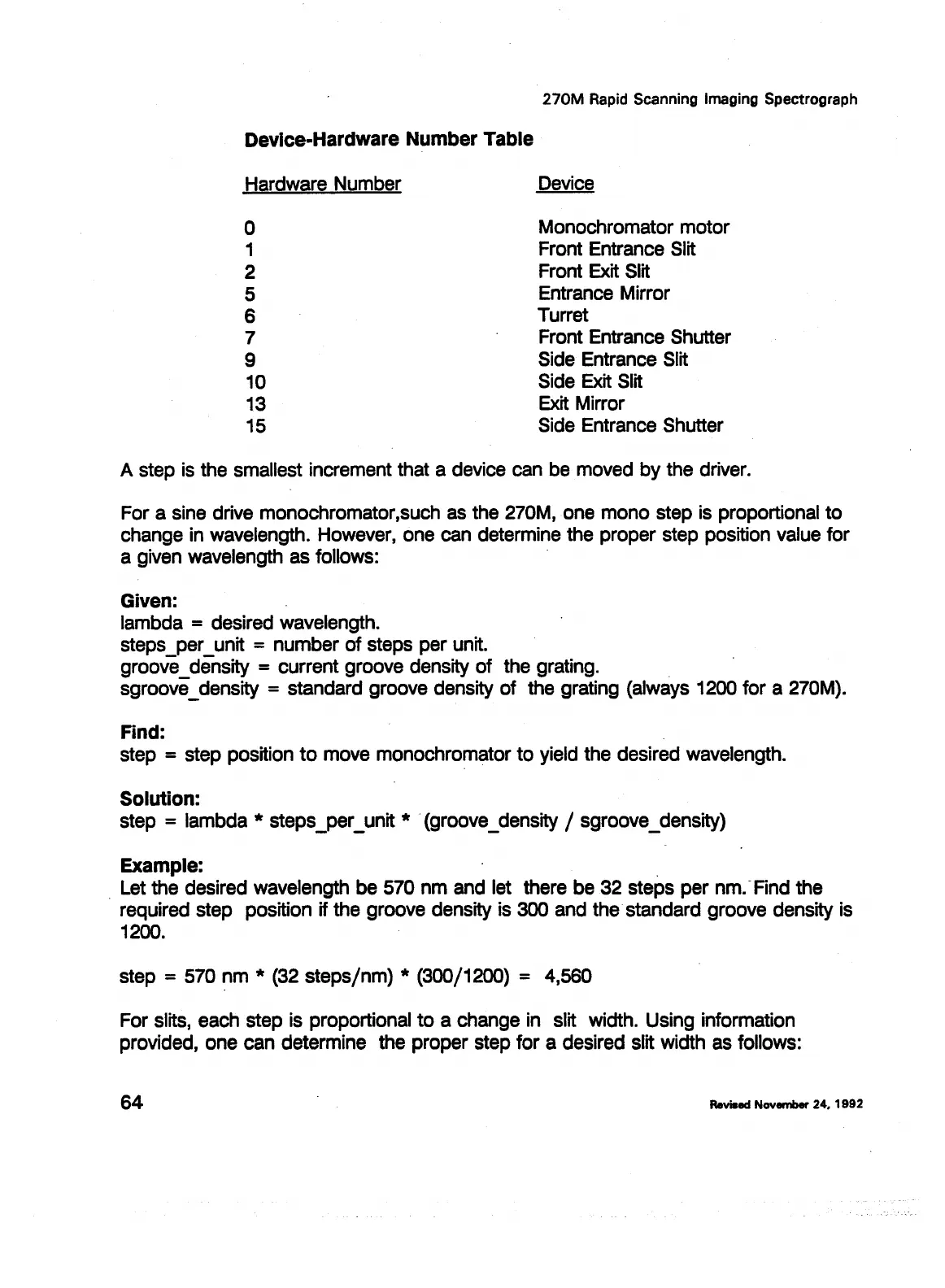 _ Let the desired wavelength be 570 nm and let there be 32 steps per nm.· Find the