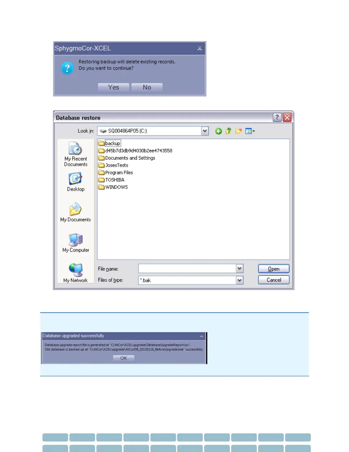 Note: When restoring the SphygmoCor XCEL database from an earlier version , a message will appear