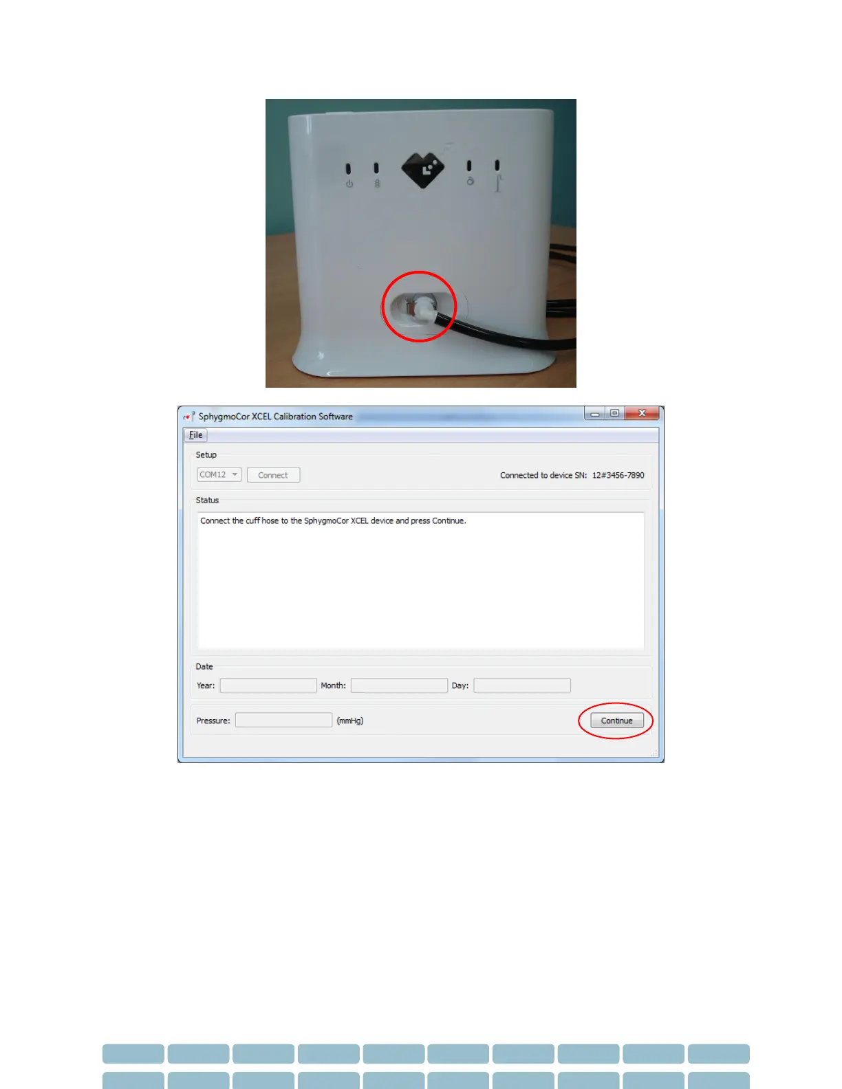 8- Connect the cuff hose on the SphygmoCor XCEL and click Continue