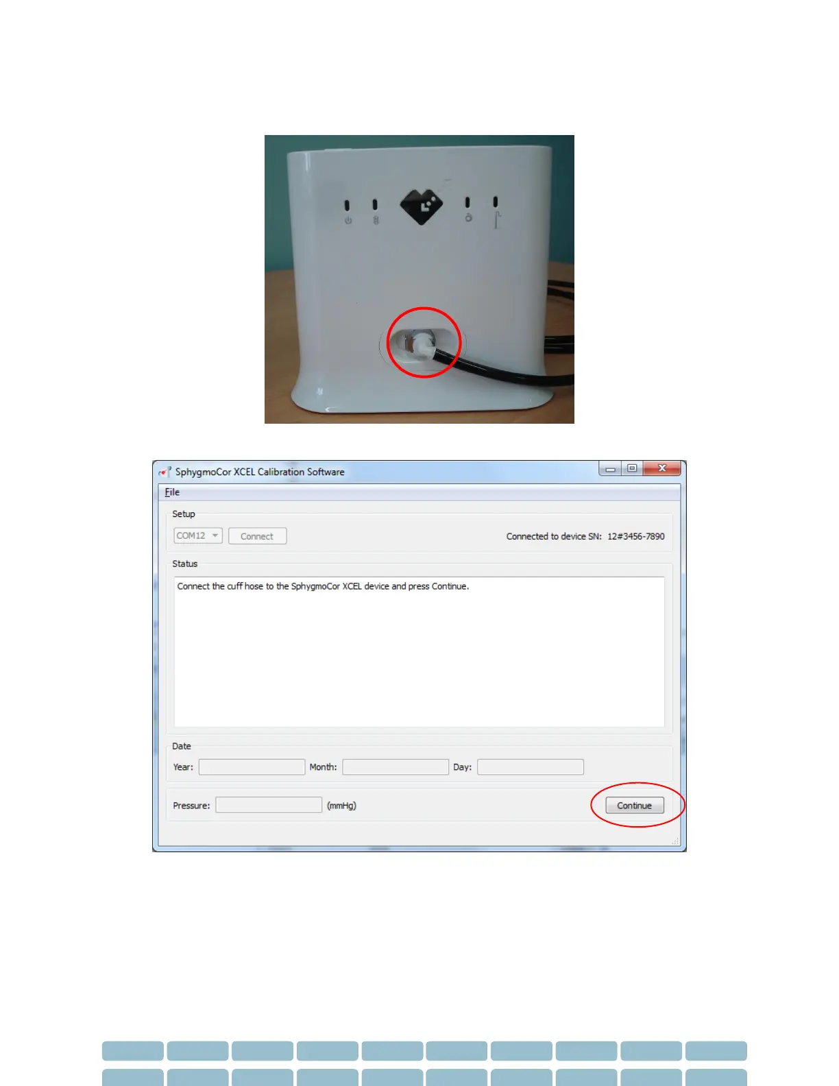 21- Connect the cuff hose on the SphygmoCor XCEL and click Continue