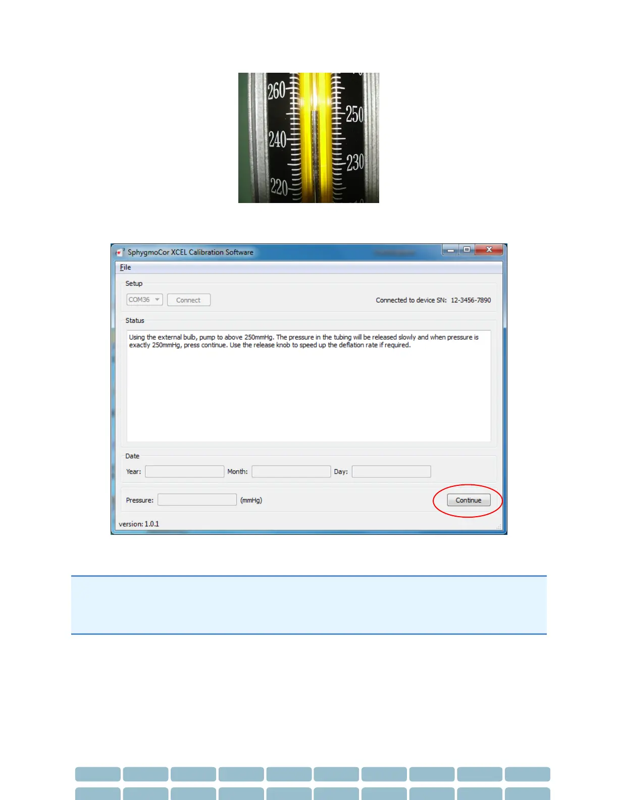 22- Using the bulb, pump until the pressure on the manometer is slightly above 250 mmHg.
