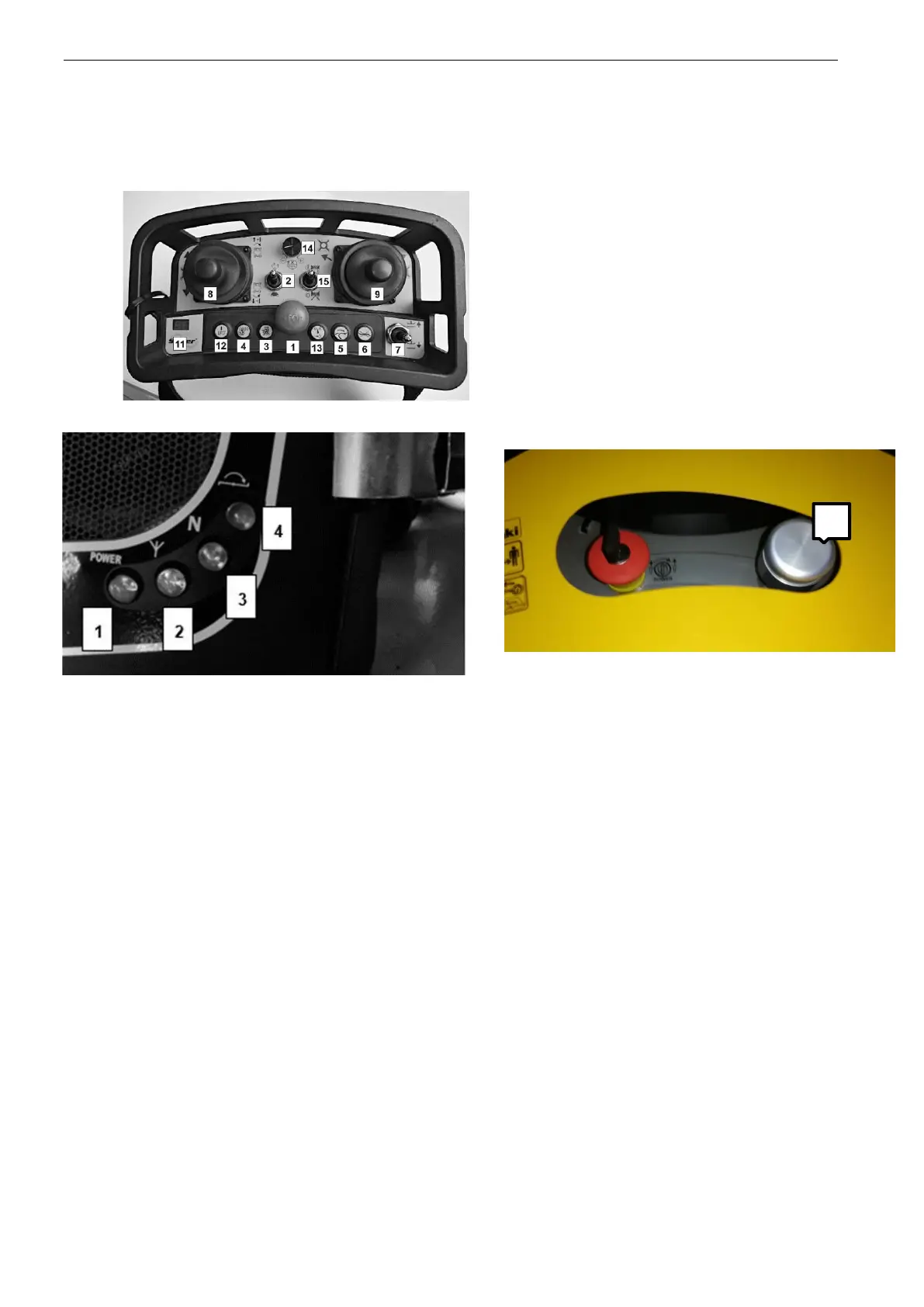 Power indicator: Illuminated green when the EMERGENCY STOP button on the top of the mower is