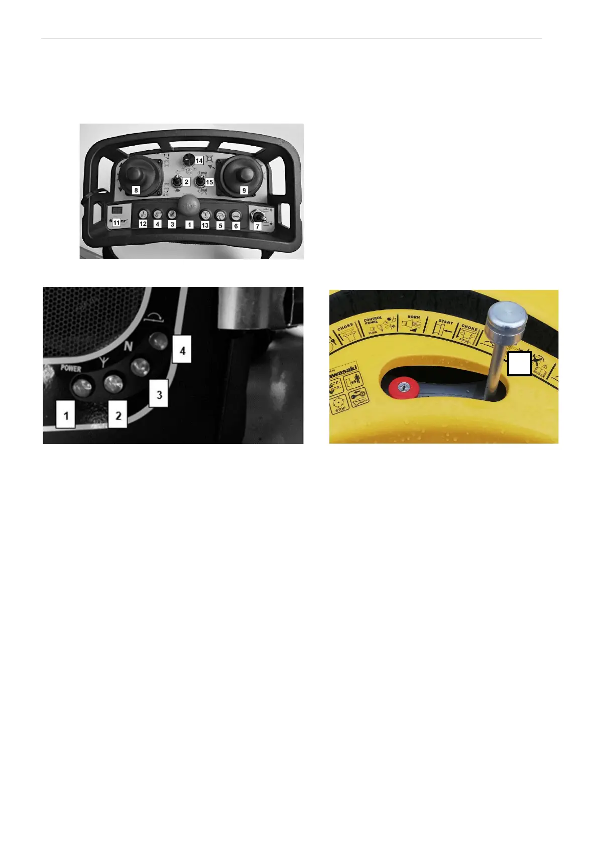 Power indicator: Illuminated green when the EMERGENCY STOP button on the top of the mower is