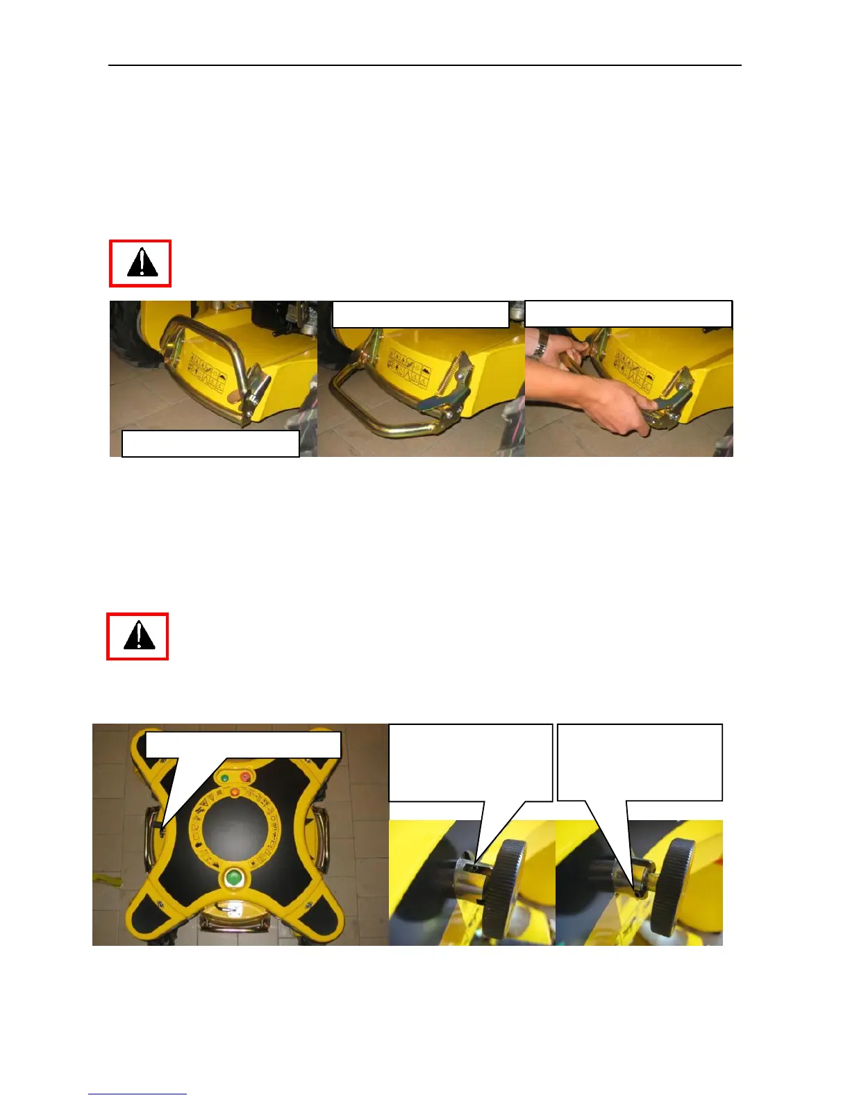 position the wheels across the slope and secure the mower by the emergency brake. This will prevent the