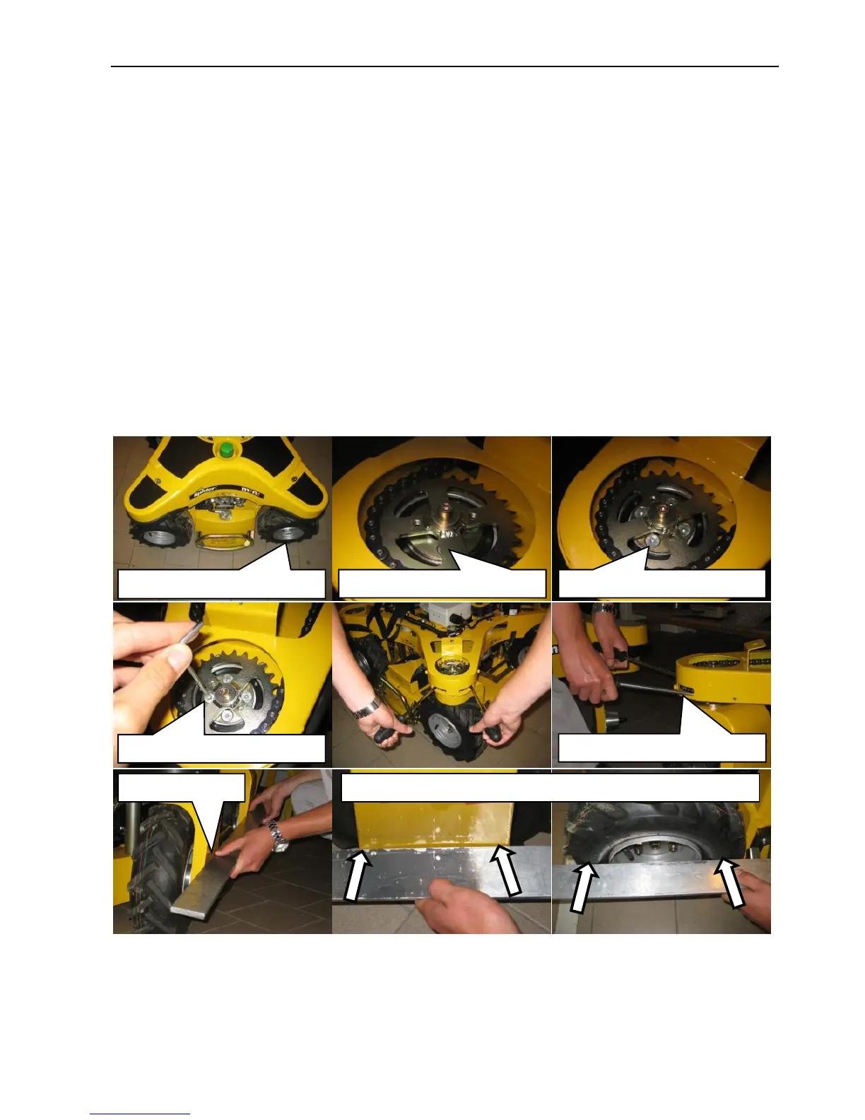 Support the mower at the places marked by the chain symbol so that the wheels are freely in the air.
