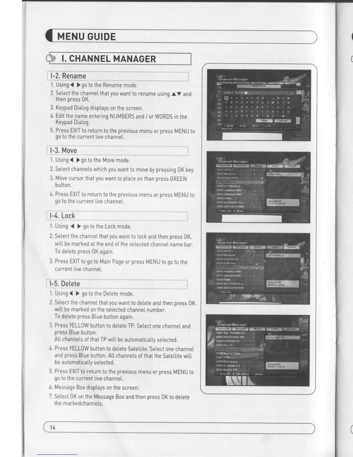 Spiderbox HD 9000 - Channel Manager 1; Delete; Lock; Move