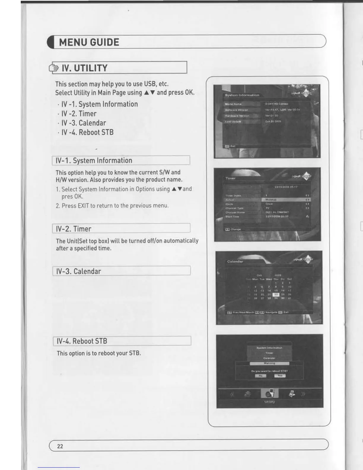 1. Setect USB in Utitity with t V and