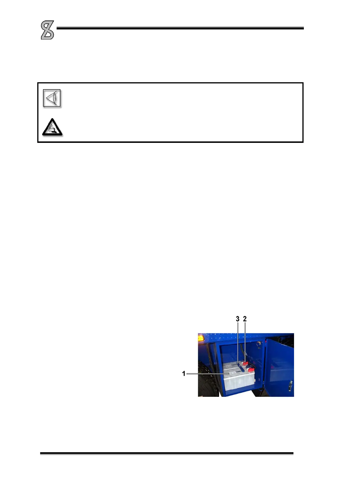 2. First remove the battery clamp (2) at the “-” poles.