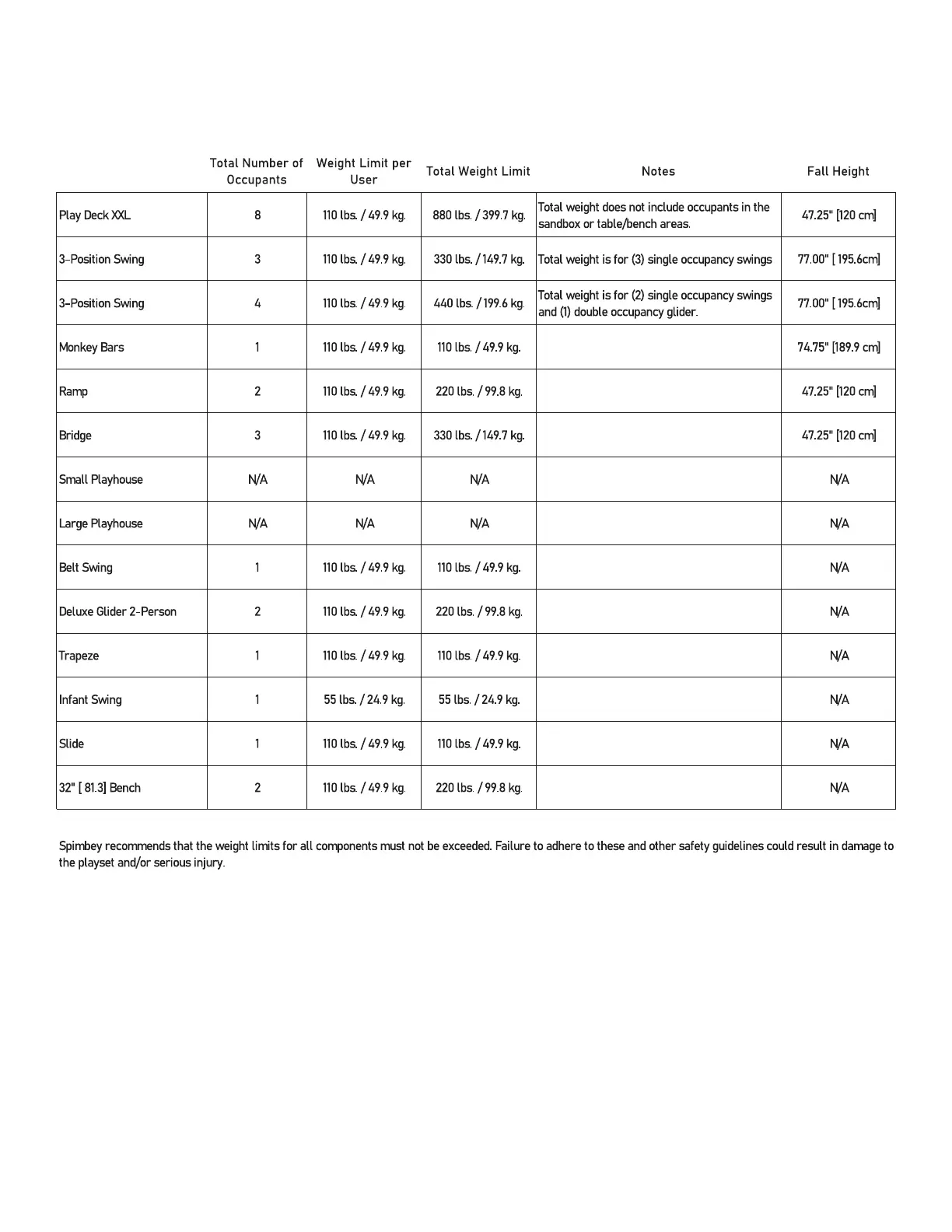 OCCUPANTS  WEIGHT LIMITS  TOTAL WEIGHT  FALL HEIGHT