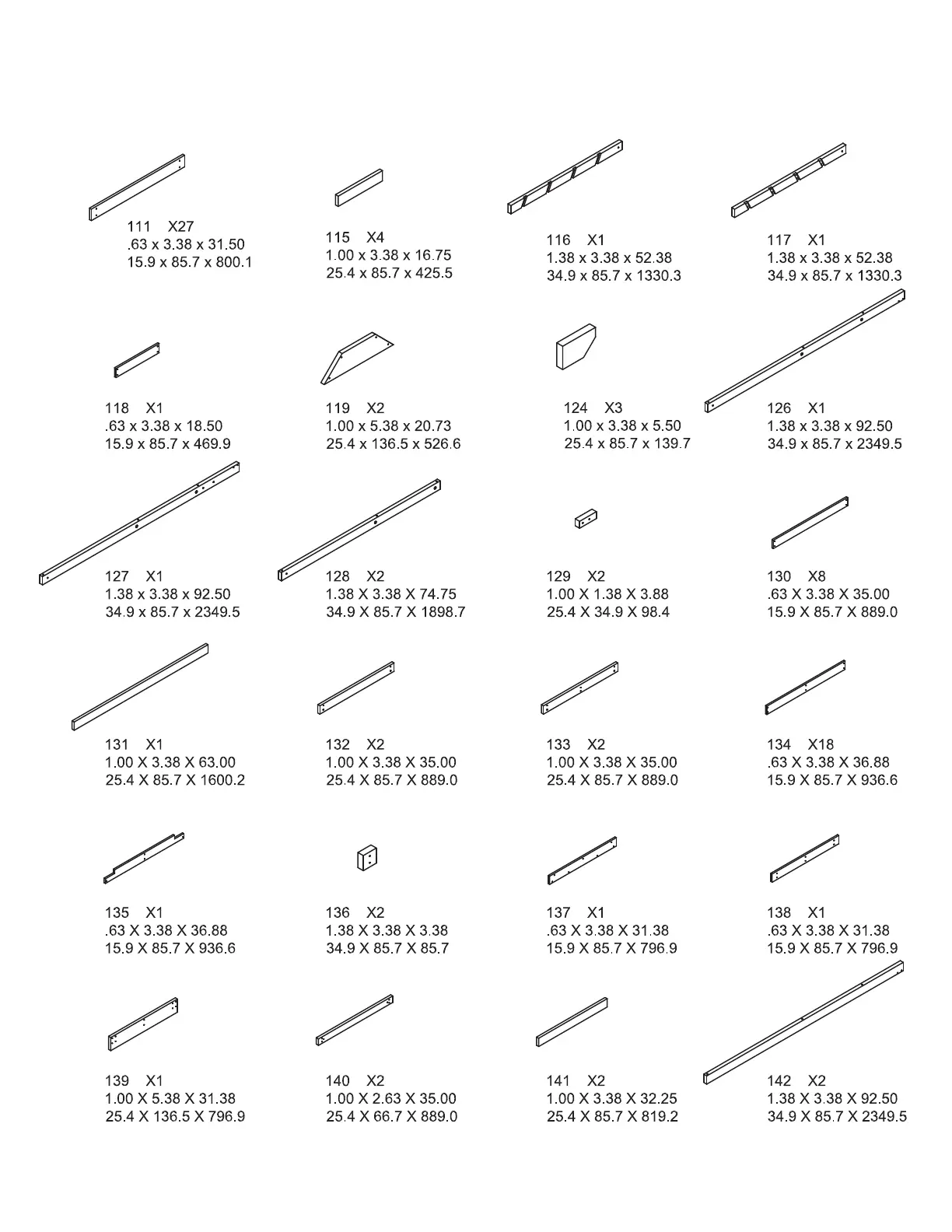 Spimbey 2004 - Wood Part Identification; Wood Part Dimensions and Quantities