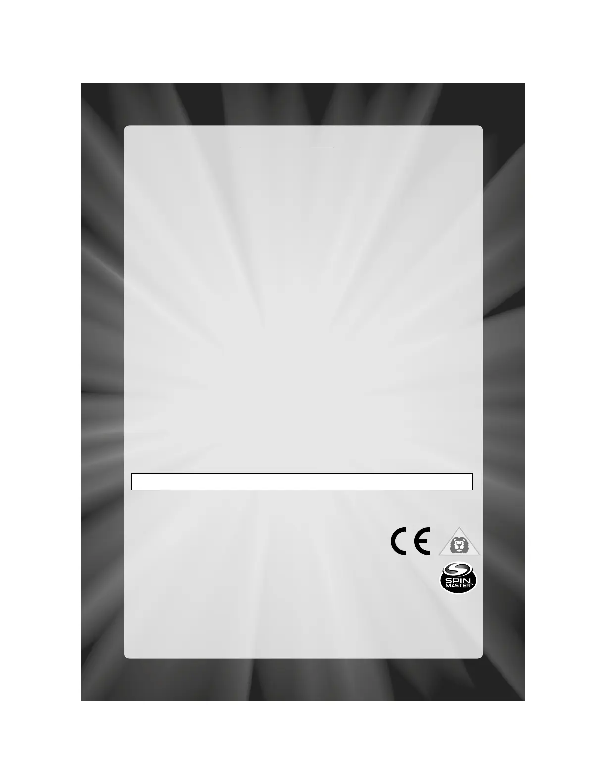Customer Service : 1-800-622-8339 E-Mail : Customercare@spinmaster.com