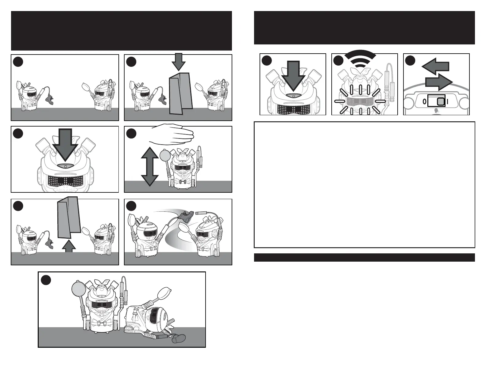 To select mode, press the button on your Ninja Bot's head. Press once for TRAINING MODE. Press twice for SINGLE PLAYER BATTLE MODE.