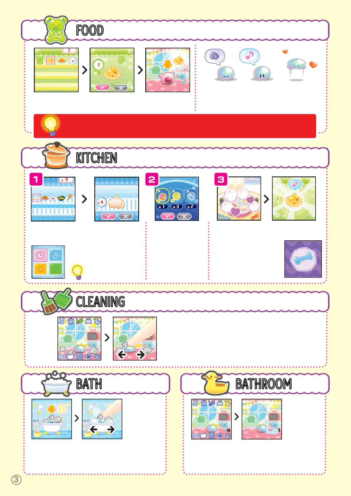 Choose Bath from the Care Menu and press B. Use the Squishy