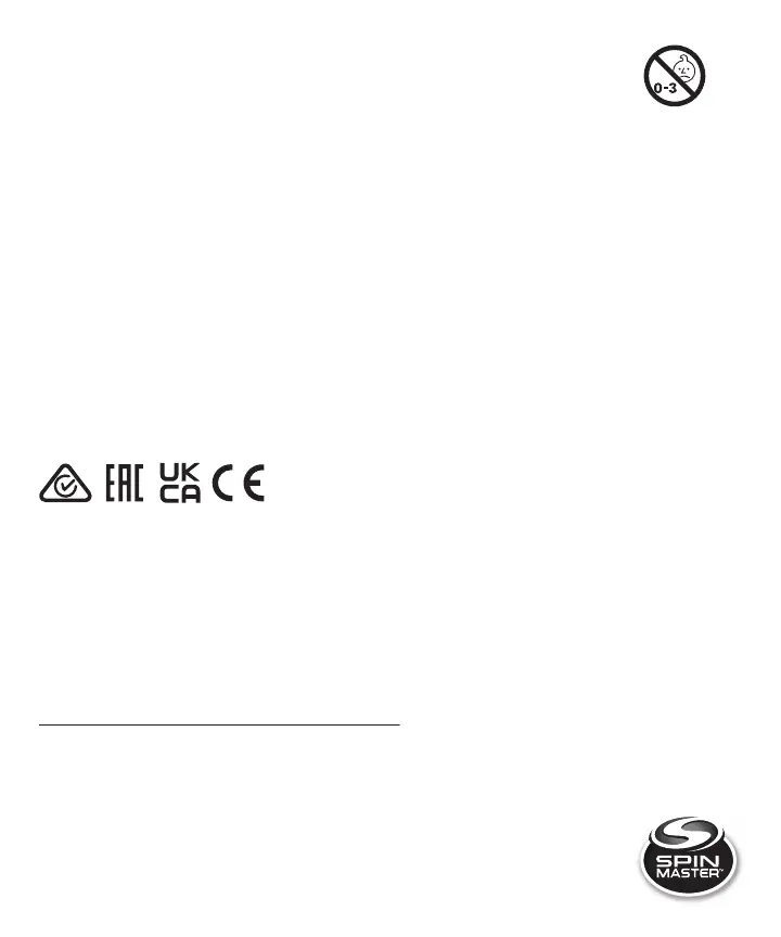 Spin Master Toys UK Ltd. Secure Trust House, Boston Drive, Bourne End, Buckinghamshire, SL8 5YS, UK