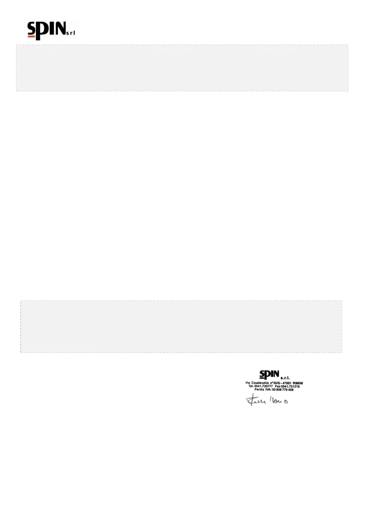 Mr. Focchi Marco c/o SPIN s.r.l. Via Casalecchio 35/G 47924 Rimini (RN) Italy