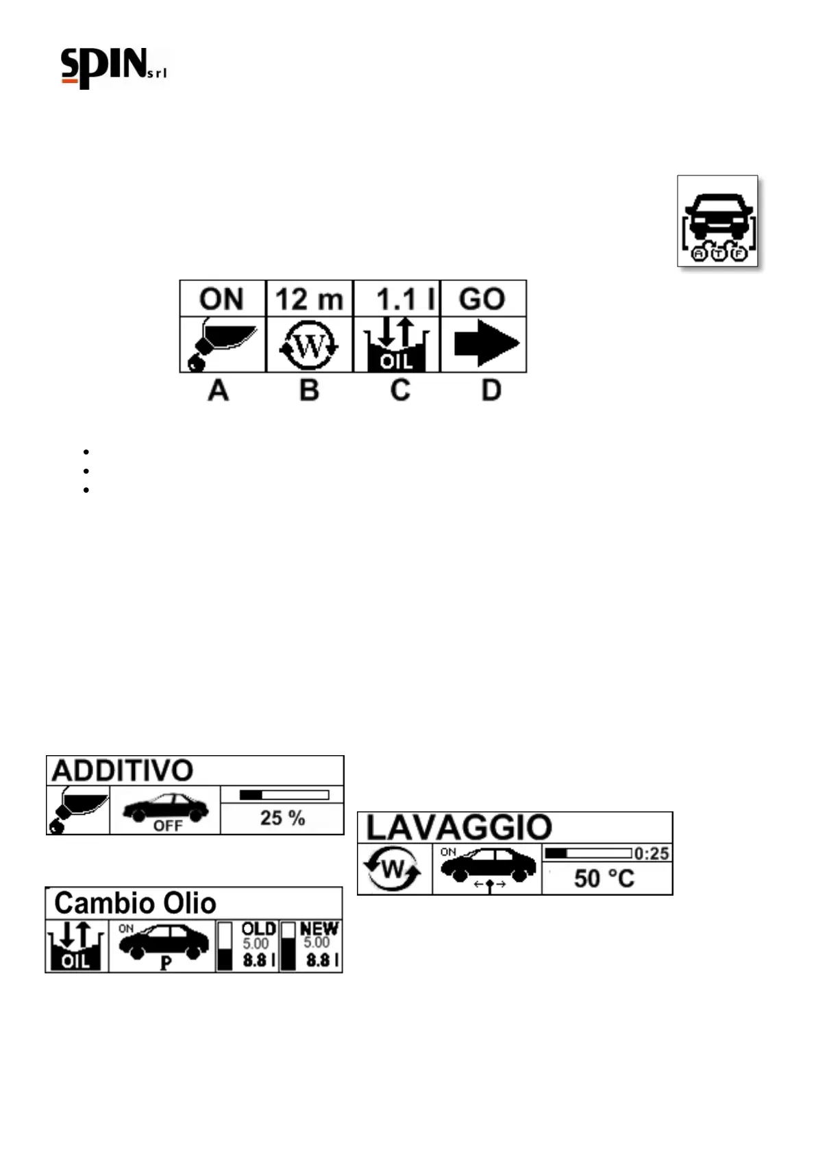 You will see the following sequence of screens that will indicate the operations to perform on the car.